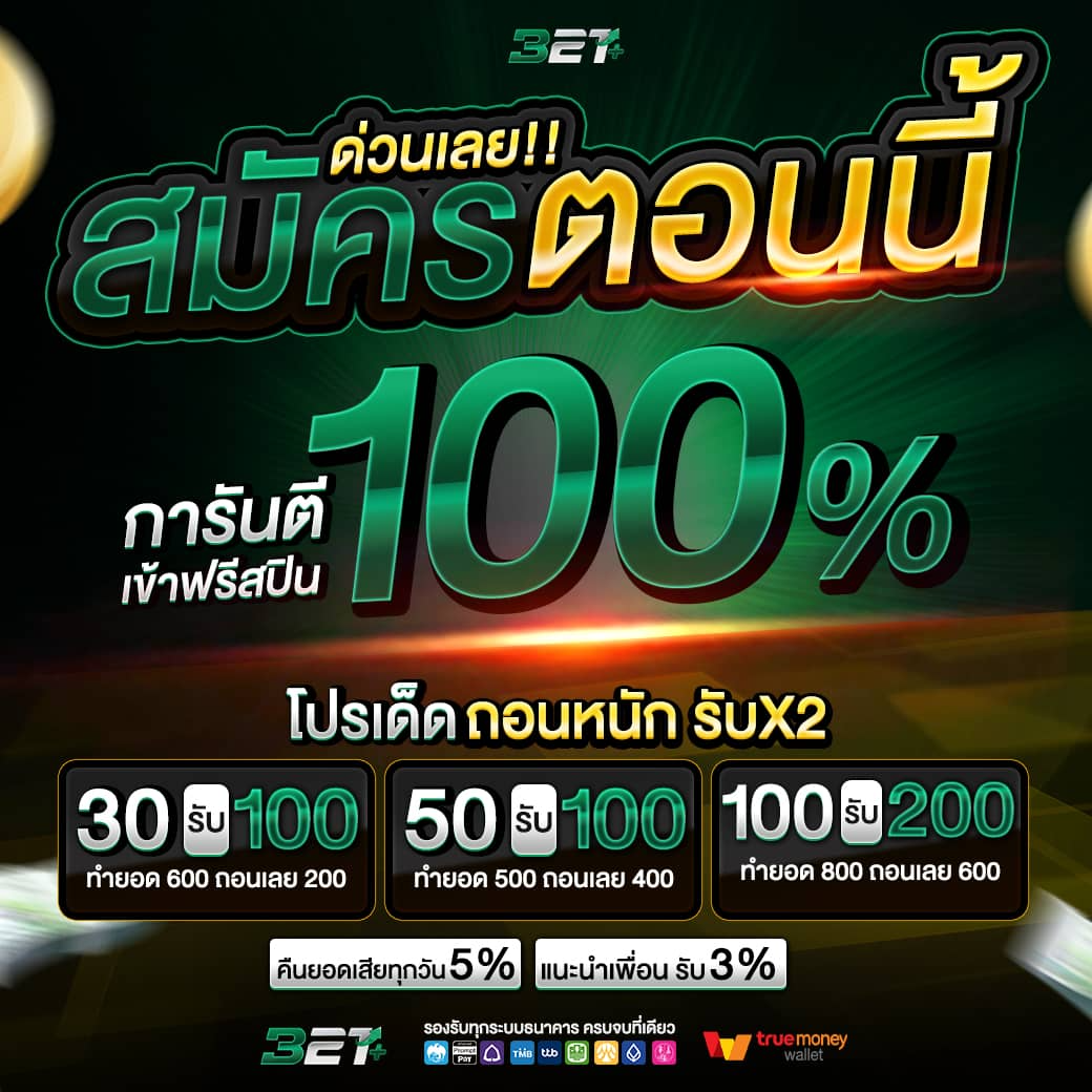 ในฐานะสมาชิกใหม่ที่เพิ่งเข้าร่วมกับ 321plus คุณจะได้รับสิทธิพิเศษสุดคุ้มค่าที่ไม่ควรพลาด! เว็บพนันออนไลน์ชั้นนำแห่งนี้มอบโบนัสต้อนรับสมาชิกใหม่สูงถึง 100% ซึ่งเป็นโอกาสทองในการเพิ่มเงินทุนเริ่มต้นของคุณให้งอกเงยขึ้นอย่างรวดเร็ว เพียงแค่สมัครสมาชิกและทำการฝากเงินครั้งแรก คุณก็จะได้รับโบนัสพิเศษนี้ทันที