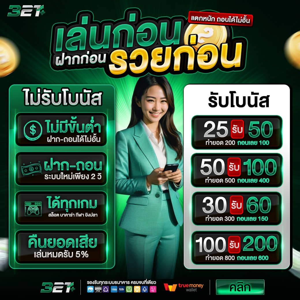 ตอบ : - รองรับการฝาก-ถอนผ่านธนาคารหลักทุกธนาคาร - มีระบบฝาก-ถอนอัตโนมัติตลอด 24 ชั่วโมง - ทำรายการรวดเร็วภายใน 1-3 นาที - มีความปลอดภัยสูง ใช้เทคโนโลยีเข้ารหัสข้อมูล - รองรับการโอนผ่าน True Money Wallet
